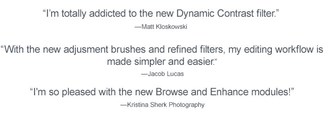 Order now for only $179.95 ($120 Off) and get Professional Presets Vol. 1 for free — 45 stunning presets for Perfect Effects created by top professionals! Plus, you'll receive the Essential Video Guide with over 60 easy-to-follow tutorials! Offer expires Dec 3. Get It Now »